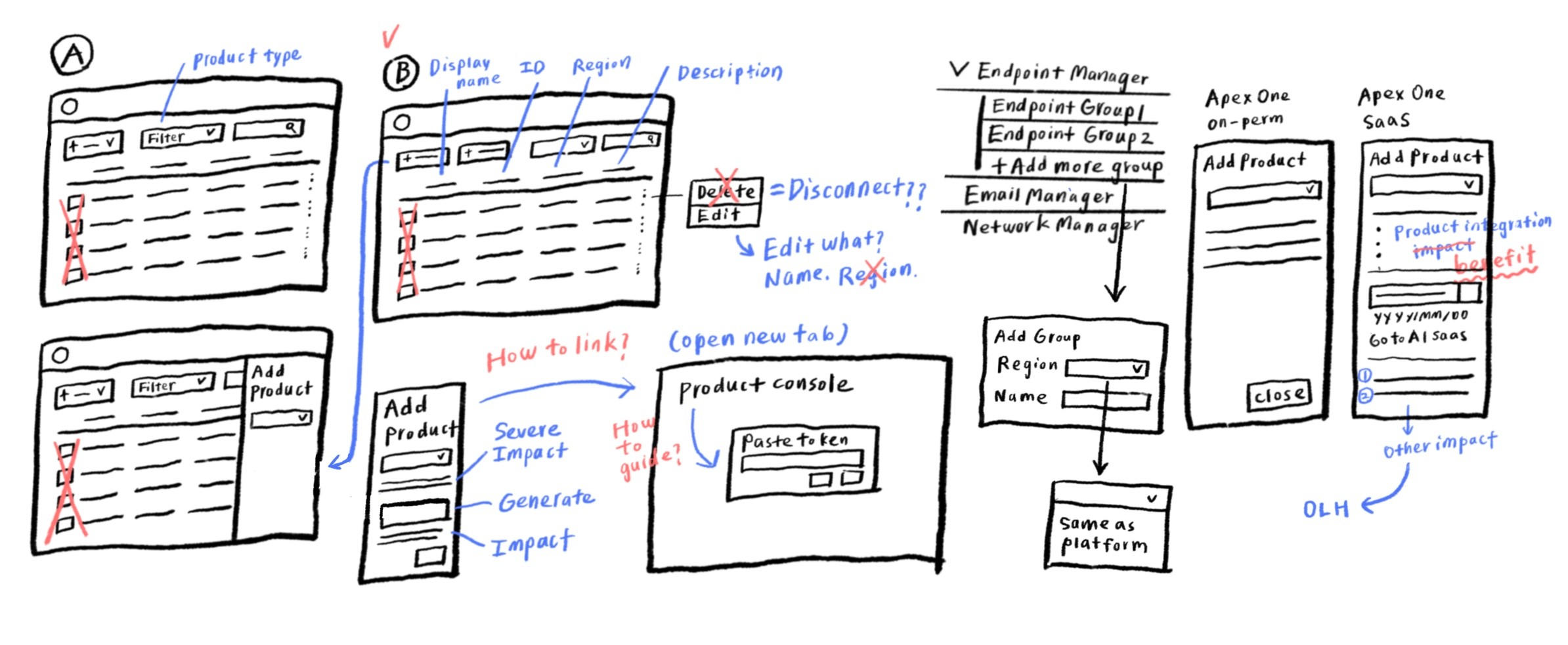 Trend Micro had many products for different layers of protection. To enable users to smoothly integrate these products onto the platform for centralized management and comprehensive protection, I crafted a high-level flow to identify issues, stakeholders, and task division. After designing a low-fidelity prototype to understand technical limitations, I completed the design, successfully attracting over 9,000+ customers to integrate their products.